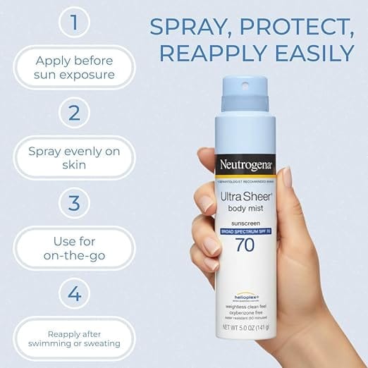 Neutrogena Ultra Sheer Body Mist Sunscreen Spray Broad Spectrum SPF 70
