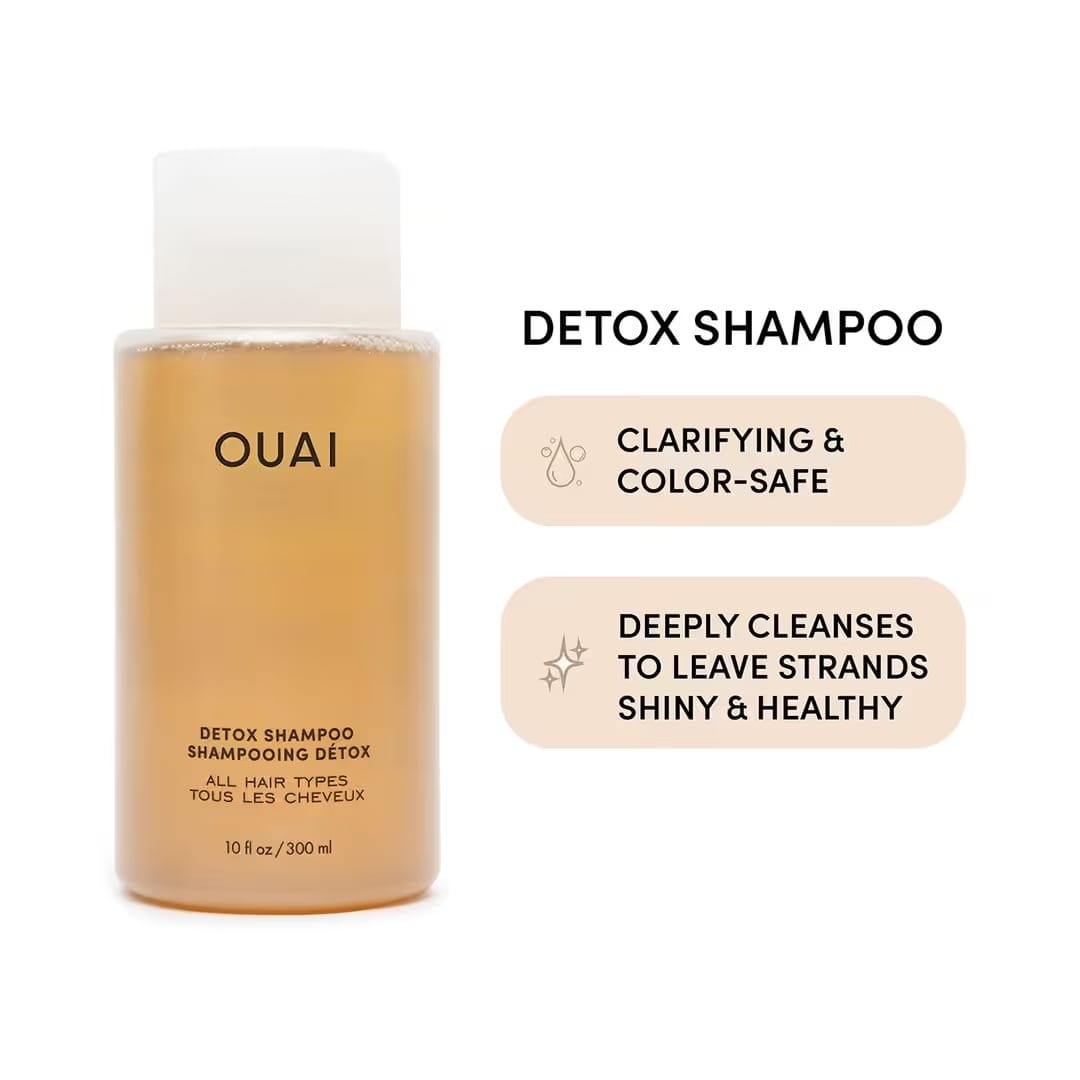 Nourish your strands from root to tip with the OUAI Detox Shampoo (300 ml). This keratin shampoo removes oil, dirt, buildup, and impurities from the scalp and hair. It is a moisturizing shampoo that locks moisture in your hair to enhance softness. Plus, the OUAI shampoo is a strengthening hair cleanser that offers strong roots. Top Notes:Champagne, Berry, Pink Peppercorn, and Lychee Heart Notes:Peony, Rose, Freesia, Jasmine, and Bergamot Base Notes:Amber, Sandalwood, White Musk, and Cedarwood